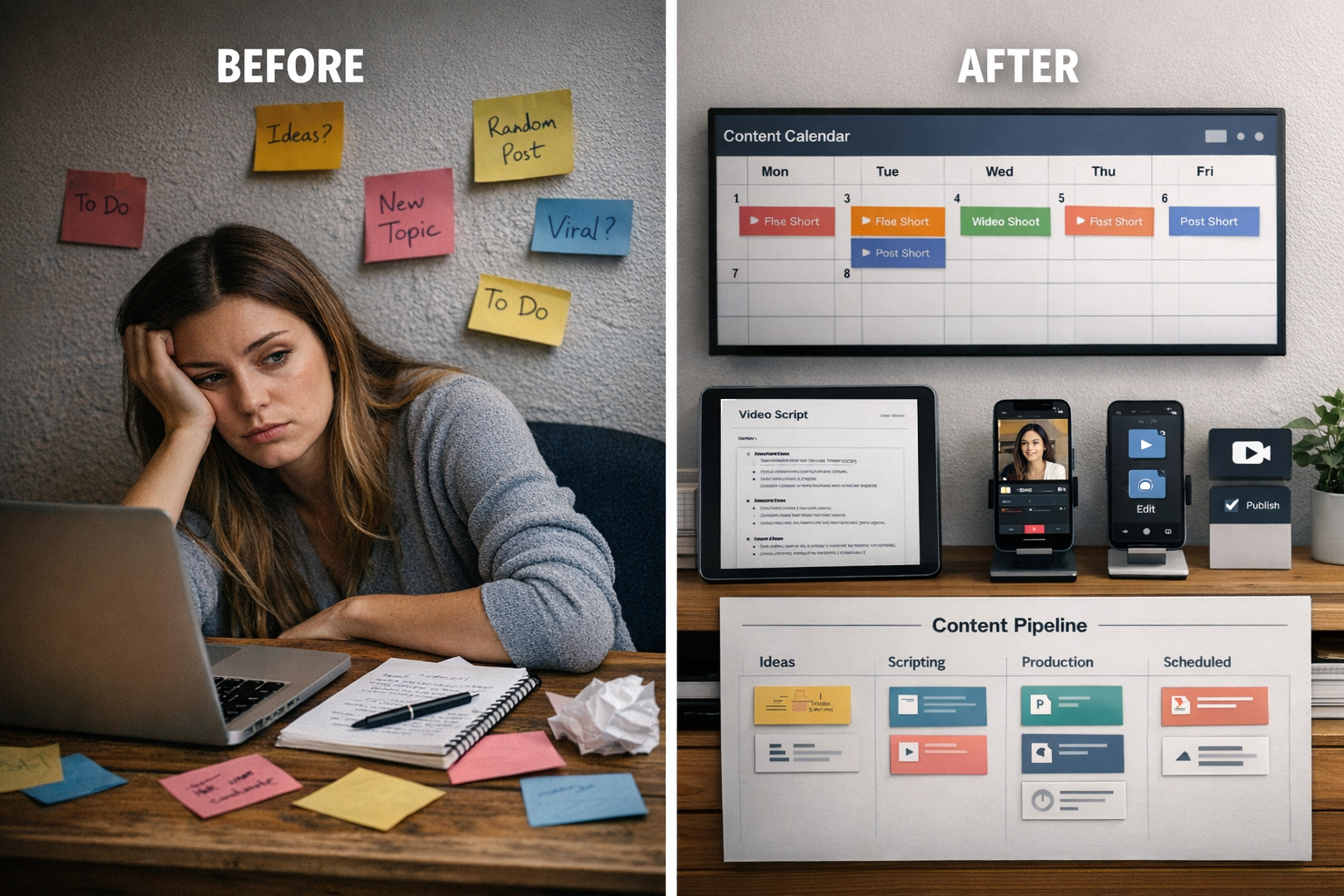 It helps turn those scripts into publishable short-form content assets.